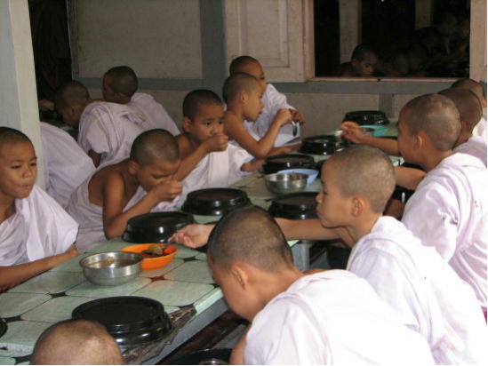 驚いたのは、食堂の横に修行僧達の食べ残したご飯をもらうために、多くの人が袋を持って待っていたこと。ミャンマー社会の格差の大きさを改めて感じた。でもお寺や僧院があるおかげで、食べるものが無くて飢え死にする人はいないのだという。