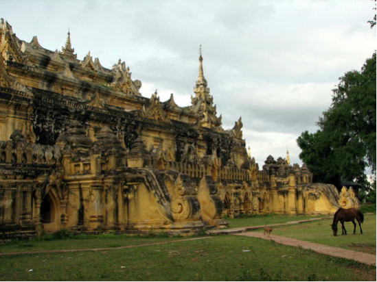 舟を下りてマハーアウンミェ僧院へ。1818年に建てられたレンガ造りの建物。なかなか雰囲気のある建物だった。