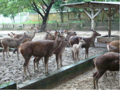 駅前を通って、さらに北へ。動物園が近いので行ってみることにした。がらーんとした入り口で外国人入場料2000チャット/人を払って中へ。客はほとんどいない。近くにいる動物の形をした水道が、変にかわいい。種類は少ないが、個体数は多い。