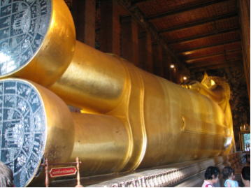 バンコクへ戻って、ワット・ポーへ。ワット・ポーといえば、この巨大寝仏。長さ46m。やっぱりでかい!